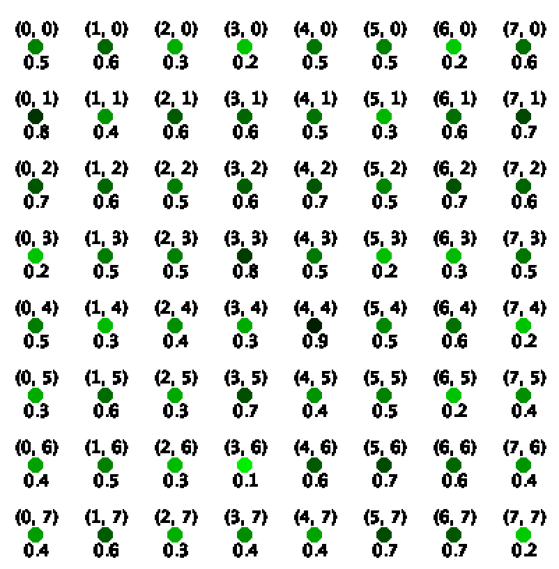 To represent the terrain, we will use a height map. To generate the height map, we use a noise function that takes in spacial coordinates and returns a seemingly “random” value.