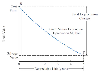And where \(d_t\) is the depreciation value at any time \(t\), \(N\) is the depreciable life, \(B\) is cost basis, and \(S\) is salvage value.